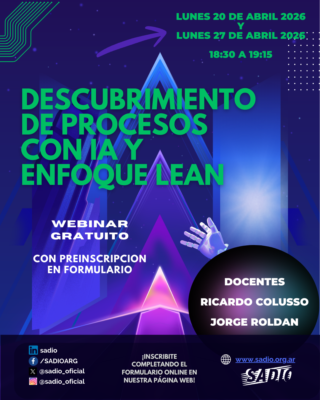 SADIO – LUNES 20 de Abril – Webinar gratuito: Descubrimiento de Procesos con IA y enfoque Lean